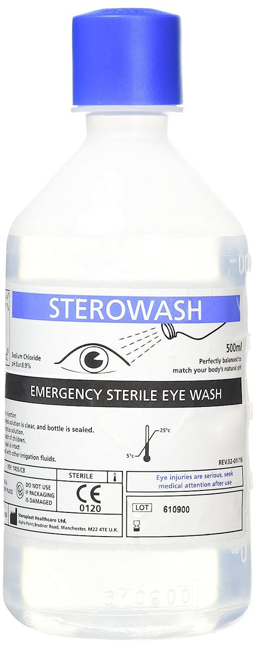 Sterowash 500ml Eye Wash Solution 0.9% Sodium ChlorideEA152 Part Number: EA152x10 Brand: Sterowash Download Catalogue Sterile Eyewas...